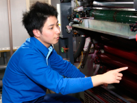 輪転機では24時間体制で作業をしています。より良い印刷物を作り上げるため、能力の向上、印刷時間や準備時間の短縮、またトータル損紙の低減という目標に日々取り組んで仕事をしています。